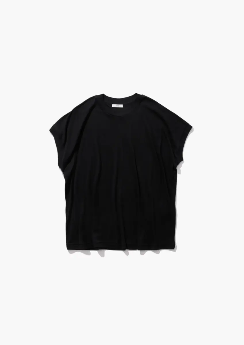 A pullover with a balanced silhouette, as if the length of an oversized tank top had been trimmed. The cap sleeves, designed to drape over the shoulders and upper arms, flatter any figure.
