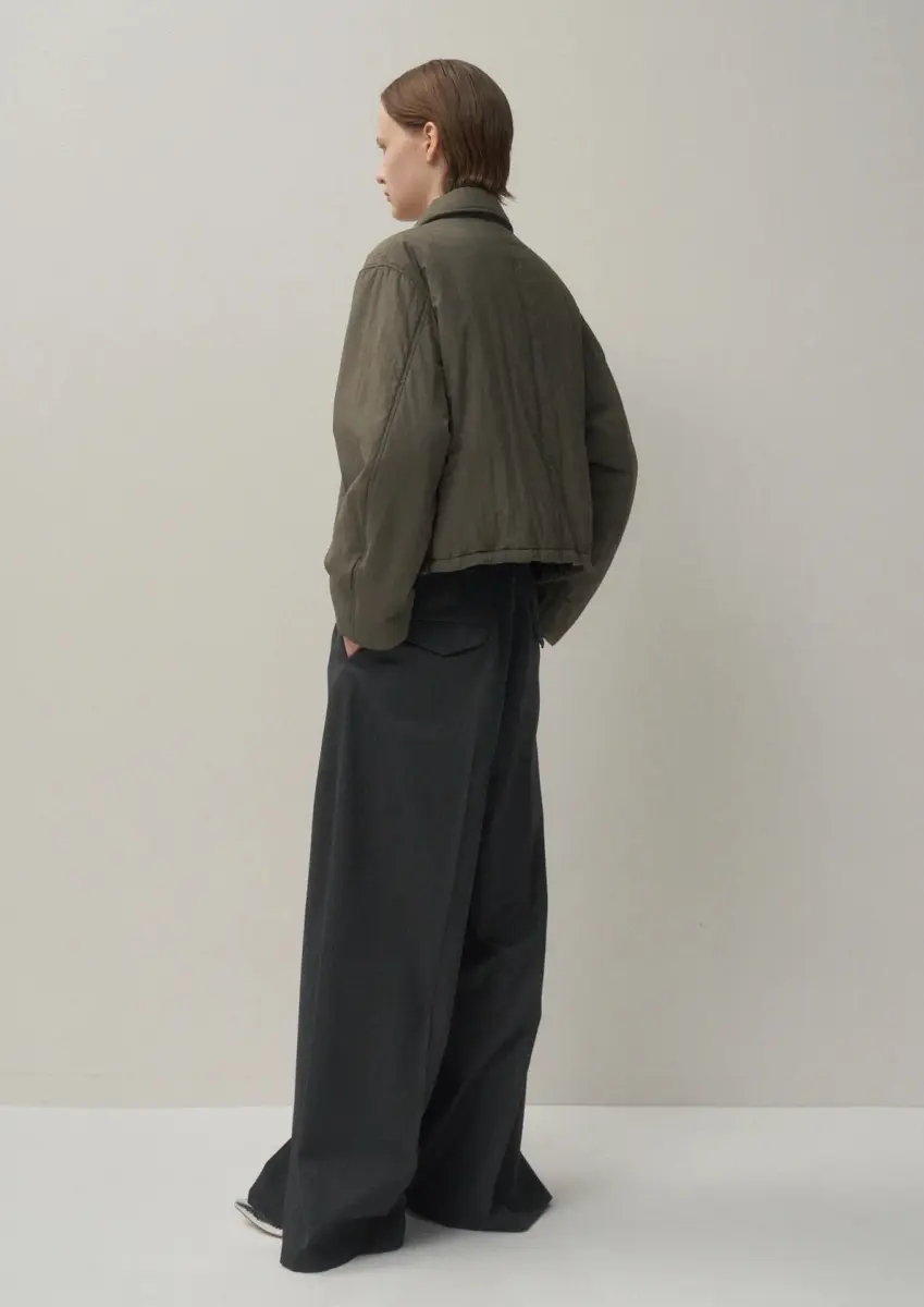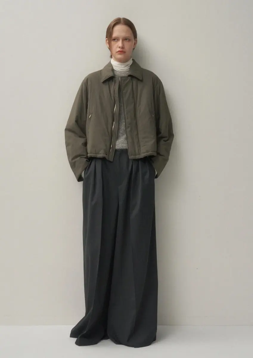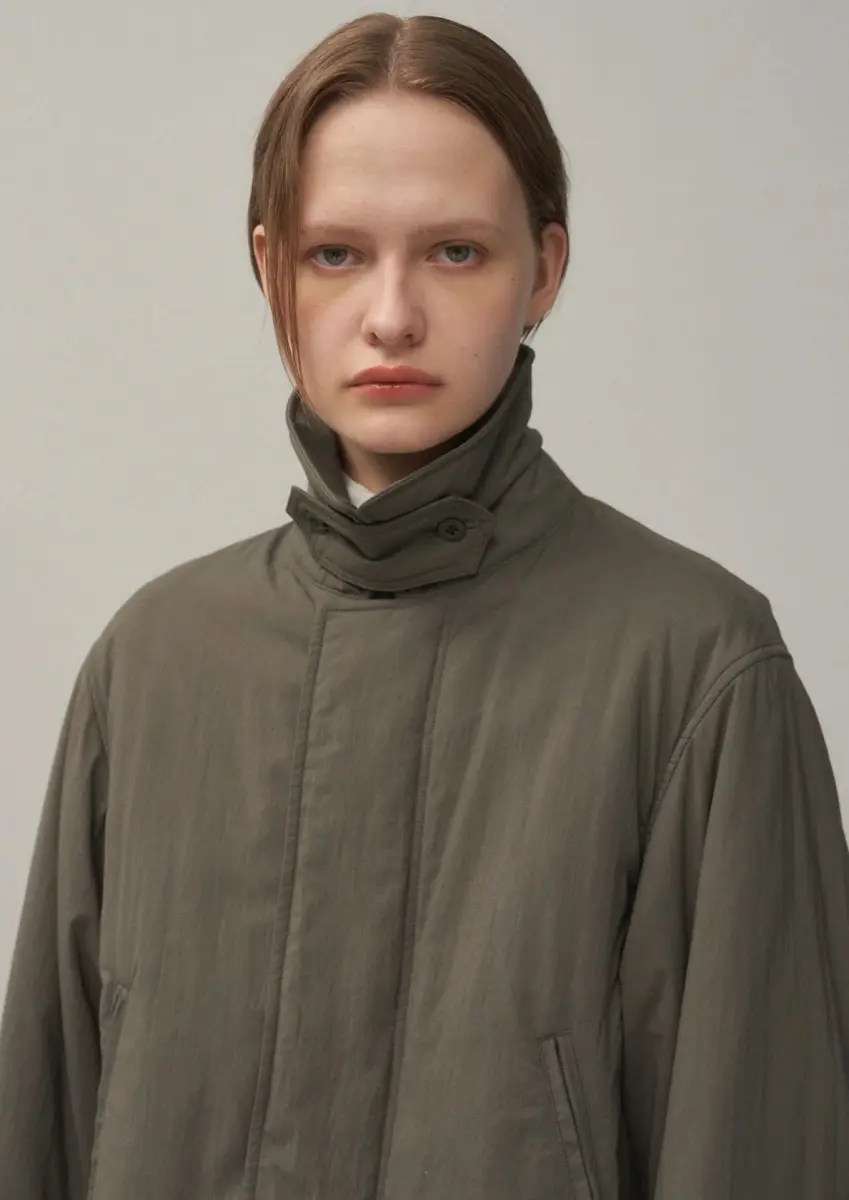 The lining uses high-density nylon taffeta, achieving a lightweight feel and a bold silhouette. The filling uses wool polyester.