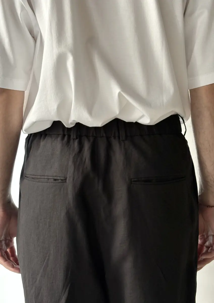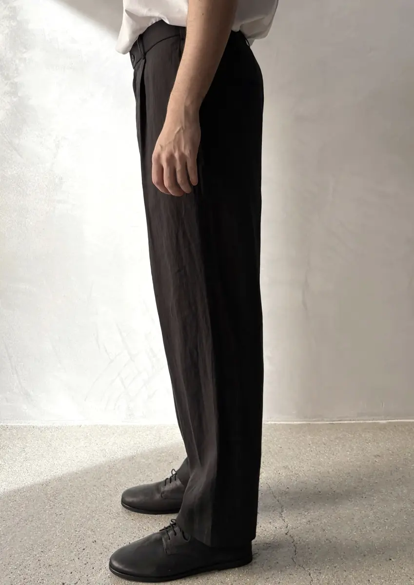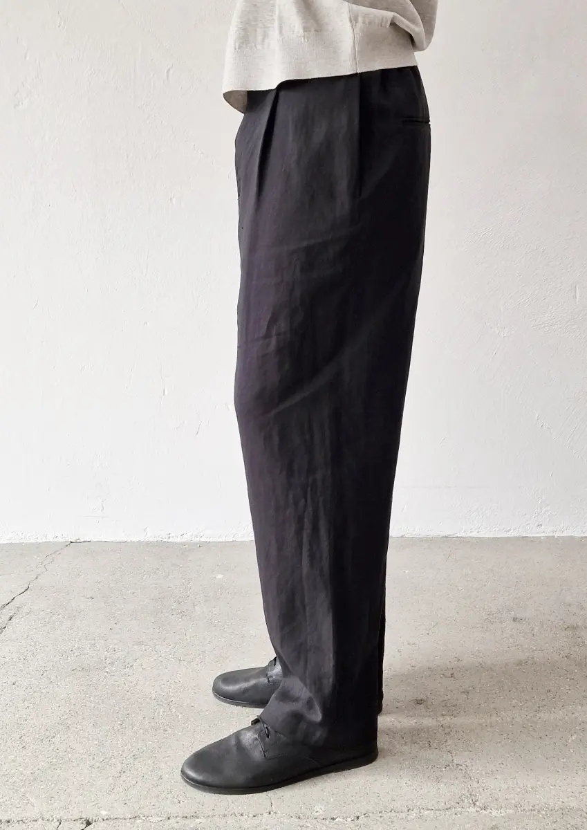Made from a silk-linen plain weave fabric woven slightly loosely in Shiga Prefecture. A special thread arrangement technique is used to blend the silk and linen as naturally as possible. This results in an original fabric characterized by the smooth touch and lustrous sheen of silk, combined with the crisp texture and rich character of linen.