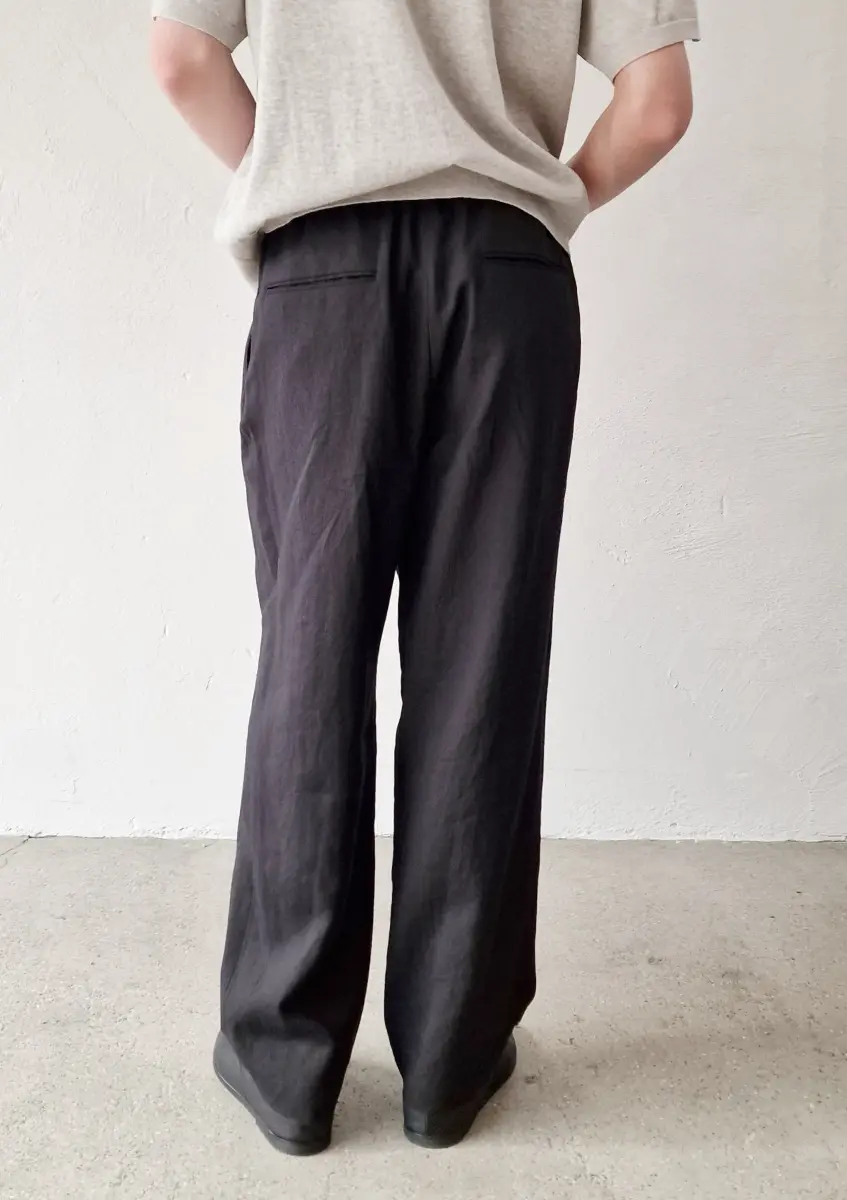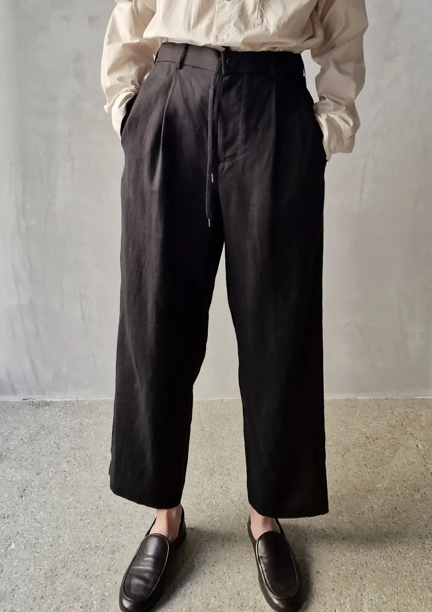 These easy pants feature a clean silhouette with a tapered leg. They can be worn as a set with the jacket. While equipped with belt loops, an internal drawstring allows for adjustment without a belt.