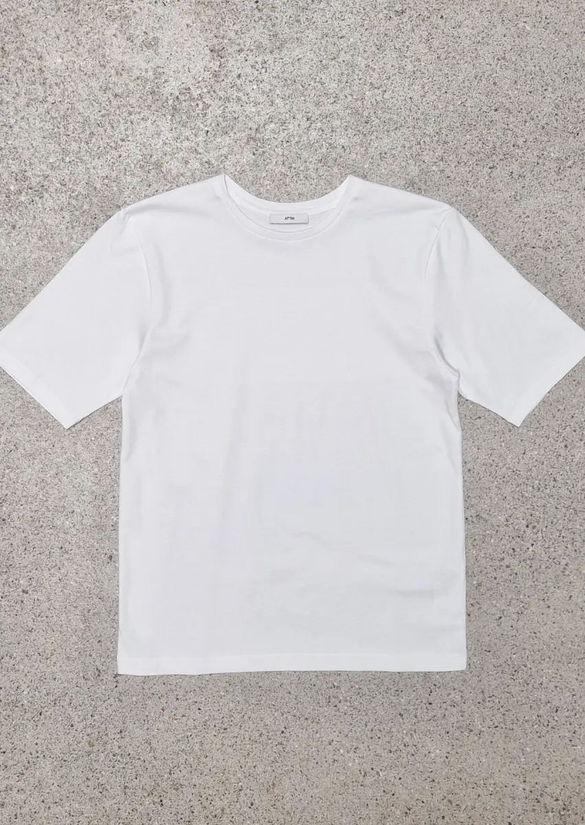 This T-shirt has sleeves that are higher than normal T-shirts. The arms fit better and the line from the shoulders to the elbows looks cleaner, giving an elegant impression.