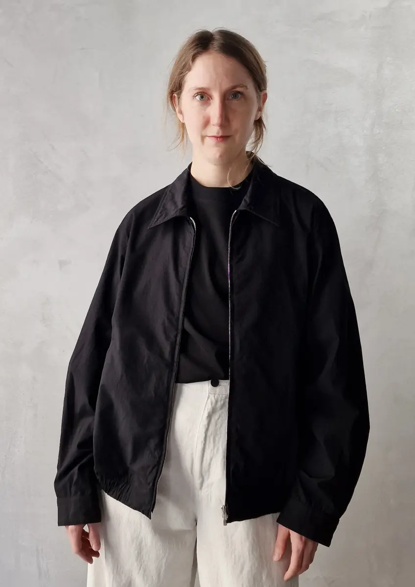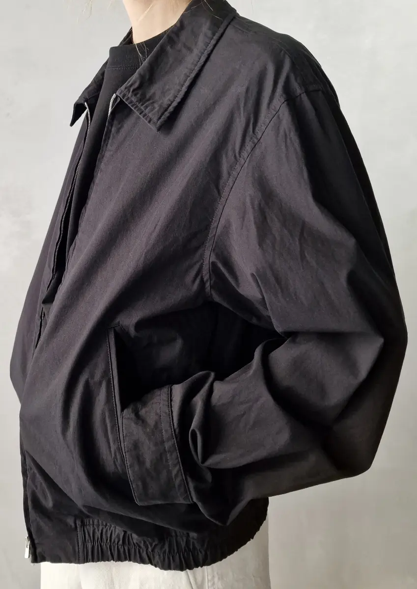 A Harrington jacket with details pared down for a slightly relaxed silhouette. Its defining feature is the expressive puckering effect created by a single wash during production.