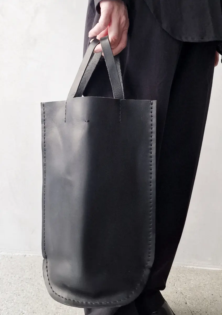 Thick leather, handcrafted in Zürich, from Claudia Bertini LAB serie, limited edition, two short handles (ca 12 cm), no additional pockets inside.
