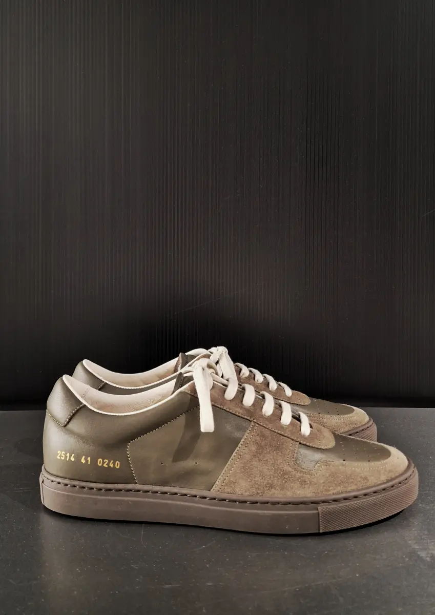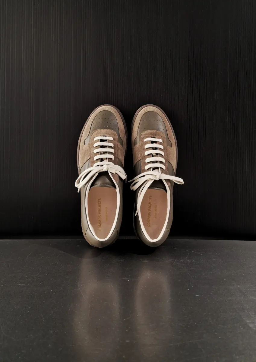 Slim sneakers in smooth calf leather with same-colour suede applications. Leather insole and fully leather lined. Set on a brown rubber sole. Gold foil stamp on the side. Fits true to size