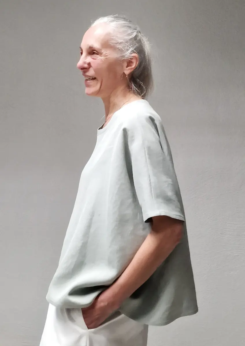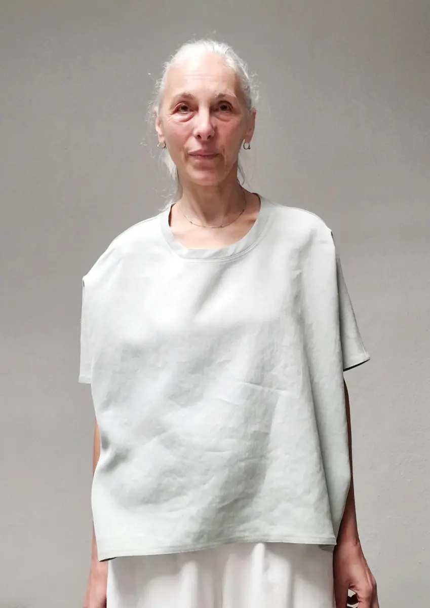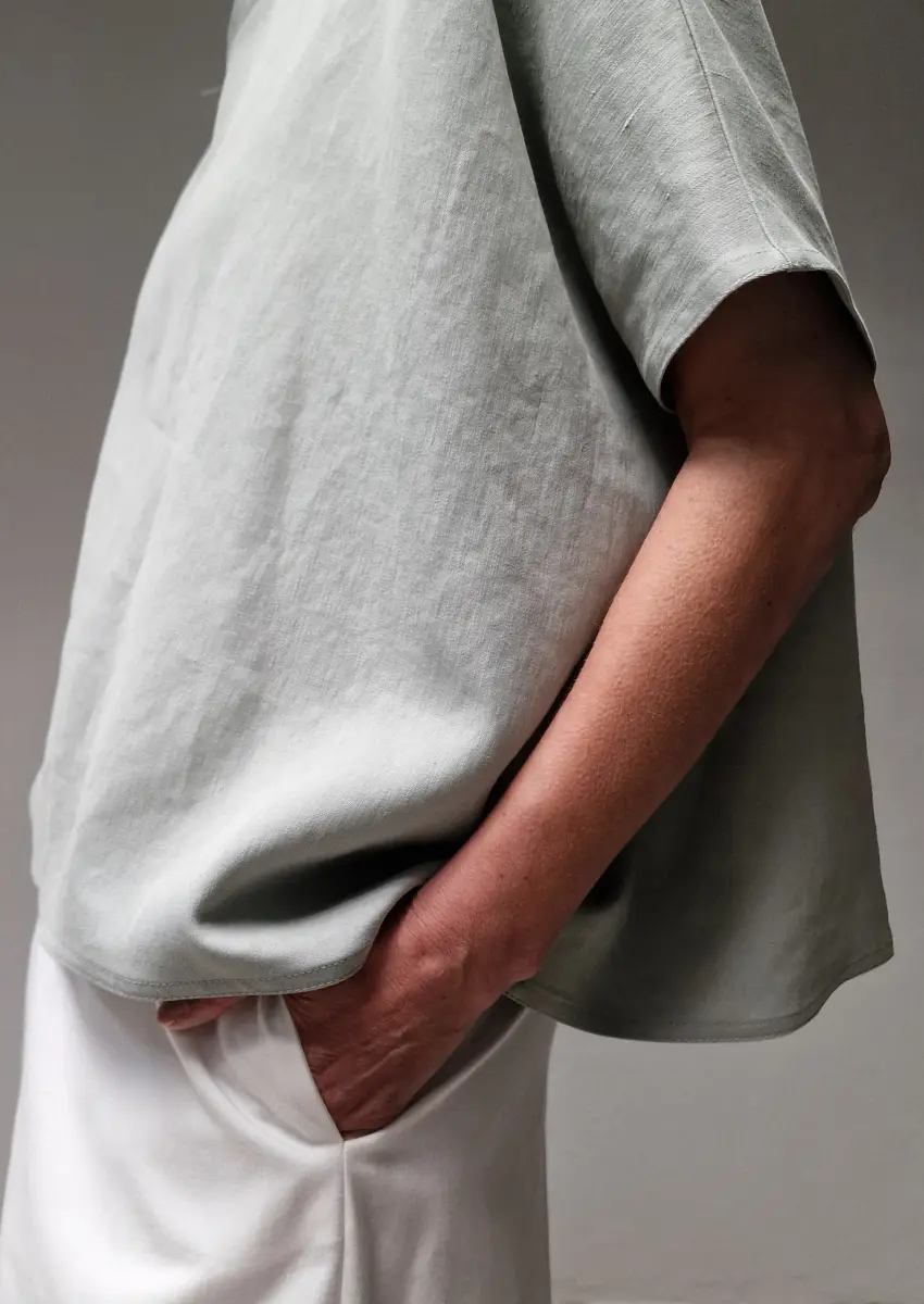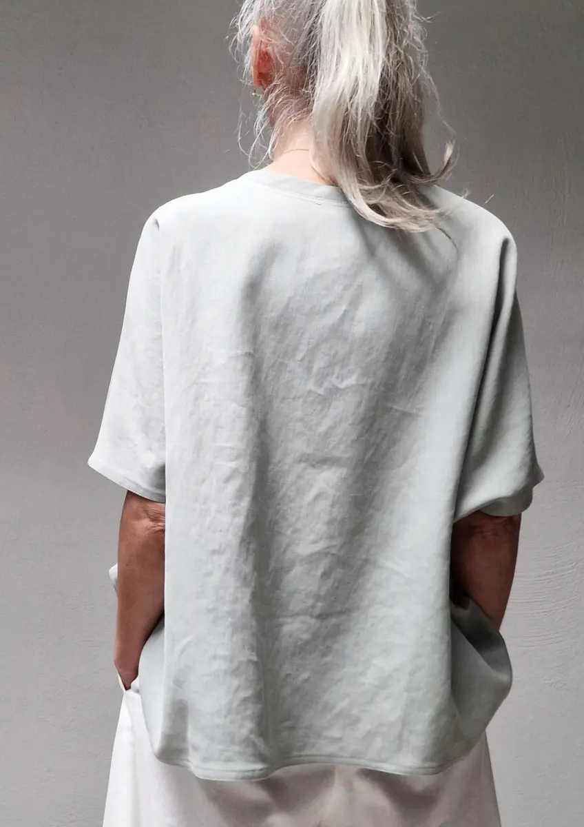 Oversized t-shirt with a round-neck, heavy linen fabric, fits very large.