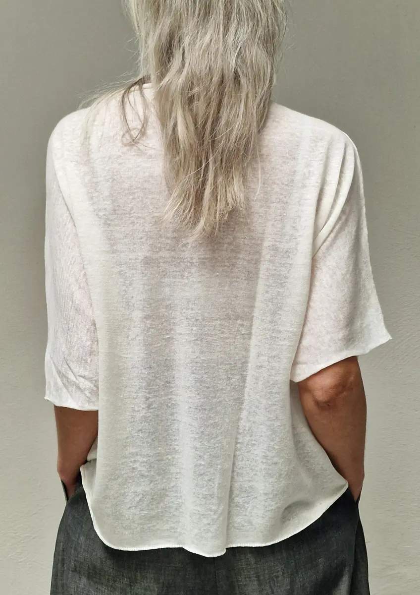Oversized knitted t-shirt with a boat-neck, rolled edge finish, fits very large.