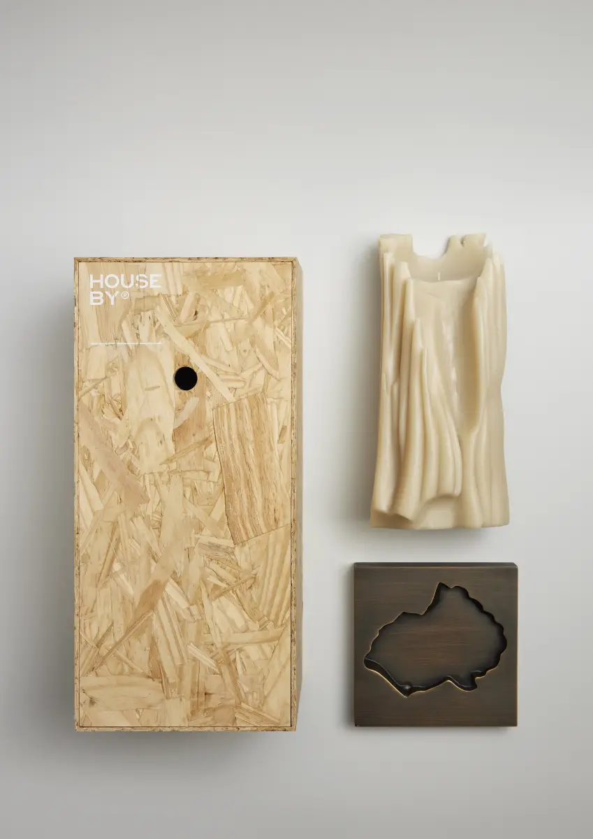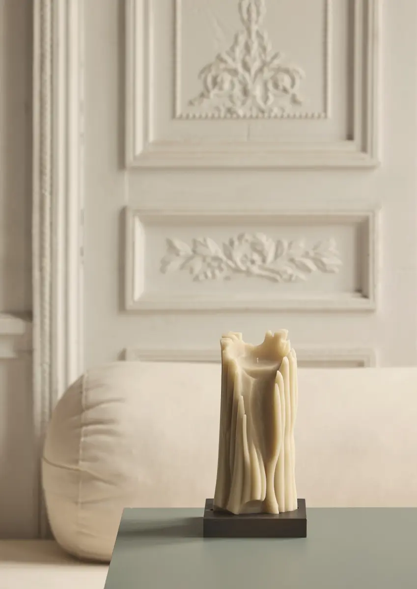 Limited edition of 700 signed and numbered stone-coloured “Totem Candles” on a hand-painted base with a bronze metal finish.